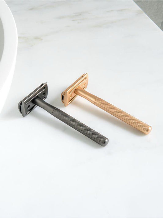 Máquina de Afeitar Metálica Reutilizable – Incluye Hojas de Repuesto + Cepillo