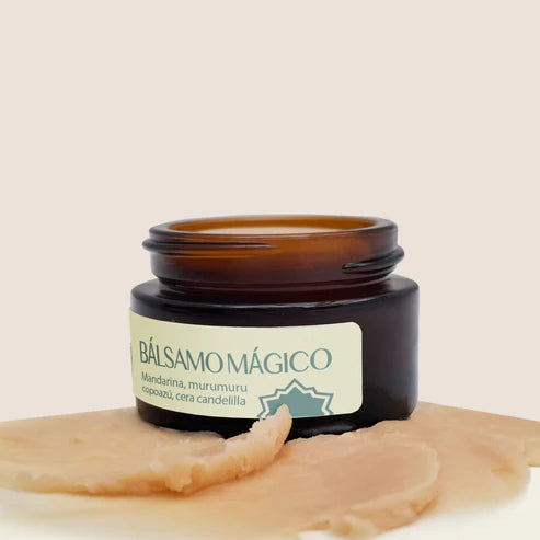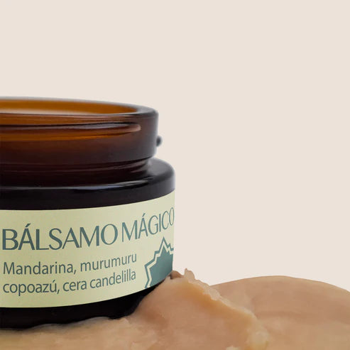Ingredientes: Mandarina, manteca de murumuru, Manteca de copoazú, manteca de cacao, manteca karité, aceite de coco, aceite de ricino, aceite de almendras dulces y cera candelilla, y vitamina E