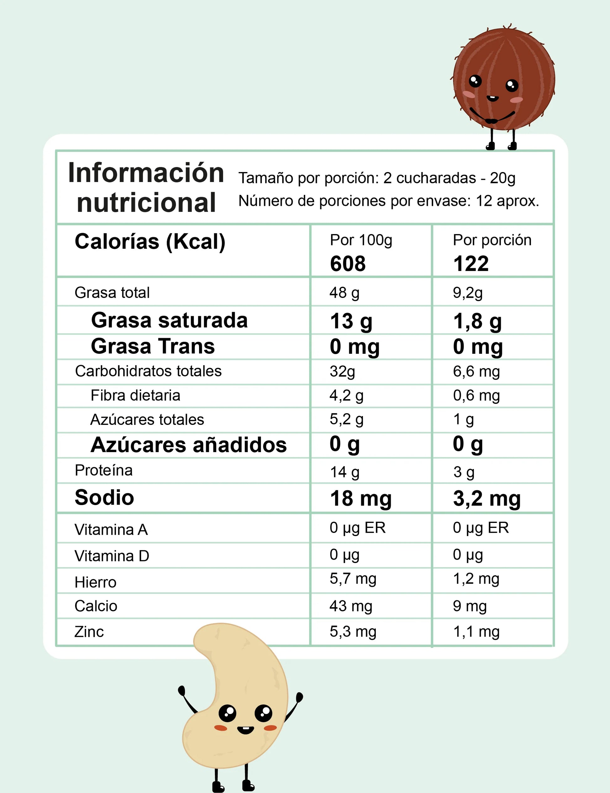 🍃 Sin: sal, azúcar añadida, conservantes ni grasas añadidas.