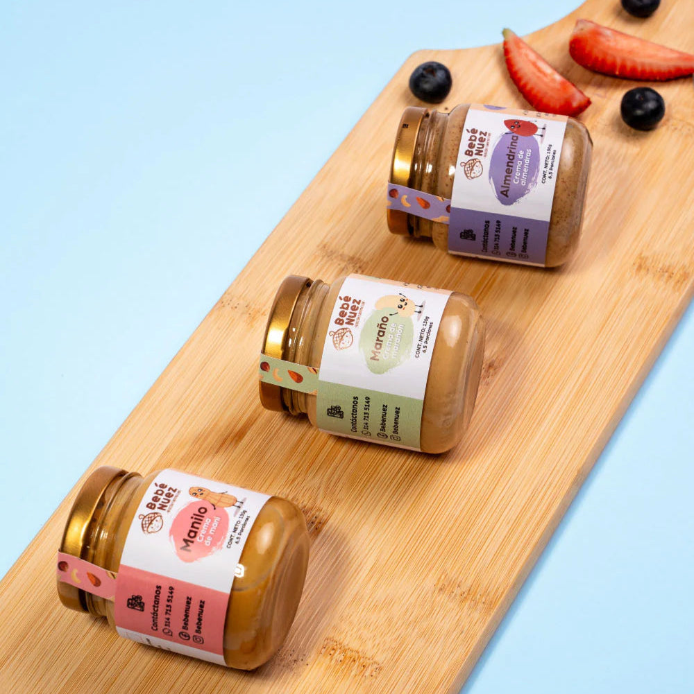 Incluye: Manilo, Almendrina y Maraño en presentación de 130 g cada una. Desde los 6 meses. Apto para bebés con APLV. Ideal para iniciar la alimentación complementaria con sabores suaves, sin azúcar, sin sal y sin leche.