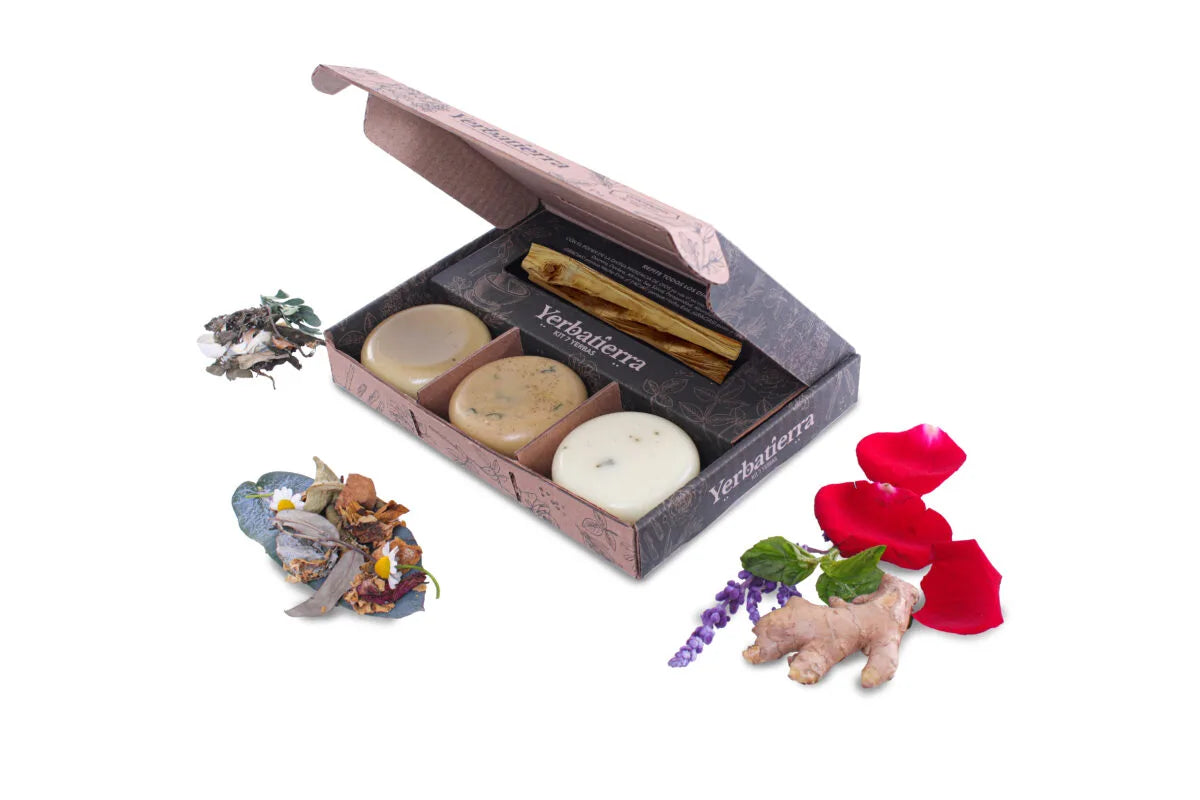 Este kit contiene nuestros 3 jabones basados en sabiduría milenaria: jabón 7 hierbas amargas, jabón 7 hierbas dulces y jabón energía vital (7 chakras). Cada barra está creada con ingredientes 100% naturales y propiedades específicas para revitalizar la piel y equilibrar la energía. Un regalo perfecto para quienes buscan bienestar integral y sanación energética.