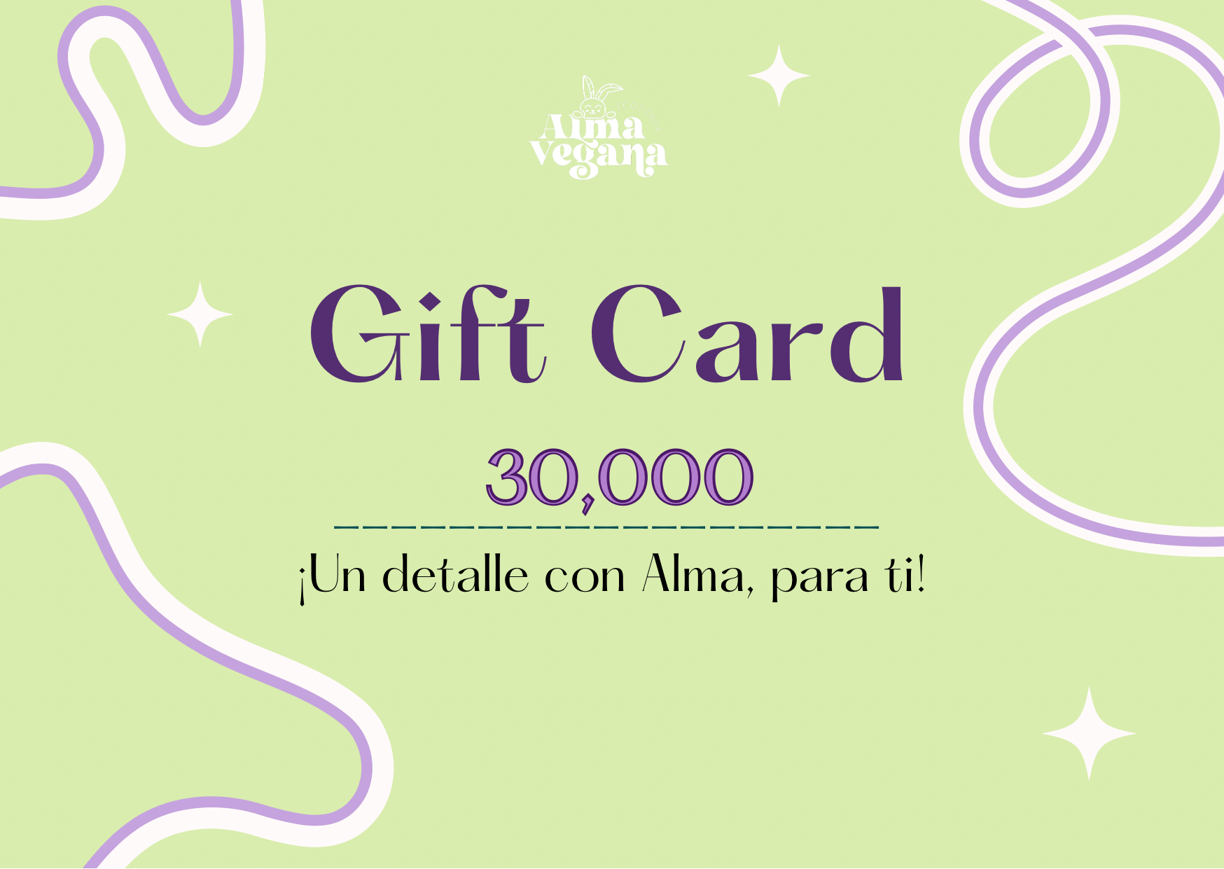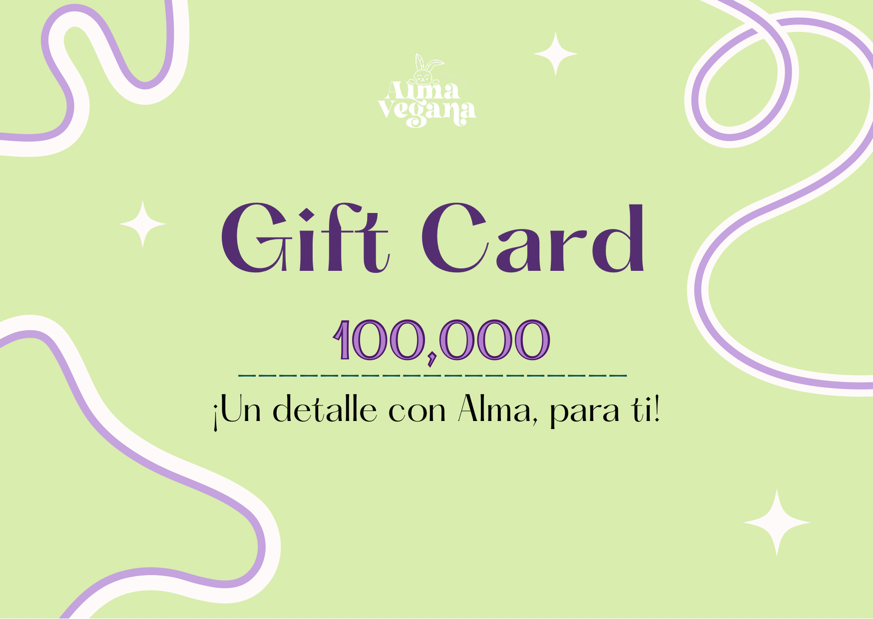La Gift Card Alma Vegana es un producto digital que se entrega mediante un código único, enviado automáticamente al correo electrónico del comprador una vez confirmada la compra.
